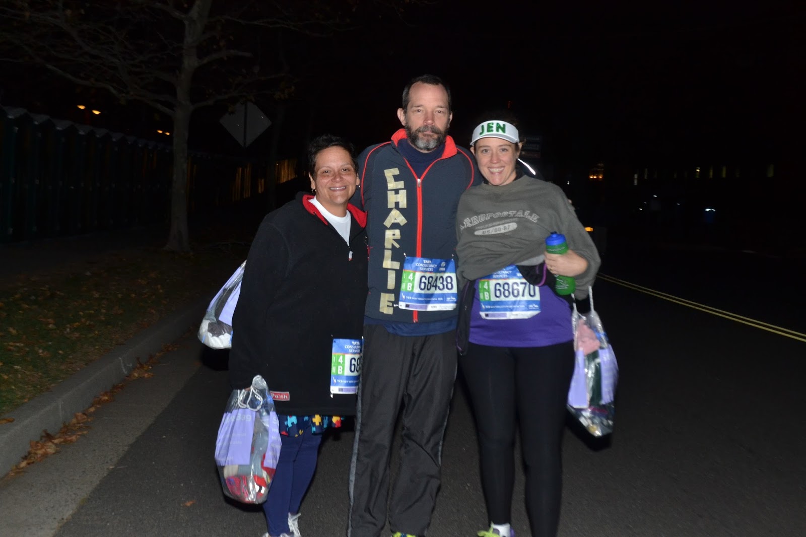 The night before the race my friends Linda and Charlie came to stay with me (read Linda's report here). This was pretty great. Linda and I have been friends for a long time and we've dreamed of doing the TCS New York marathon together for quite a few years now. A few years ago we got to run in Central Park together for a fun run and then 2 years ago we ran the "Dash to The Finish Line" 5K that takes place the day before the marathon and ends at the same finish line. During both those runs we wondered, "what would it be like to do the big one?" And lucky for us, this year we'd find out.